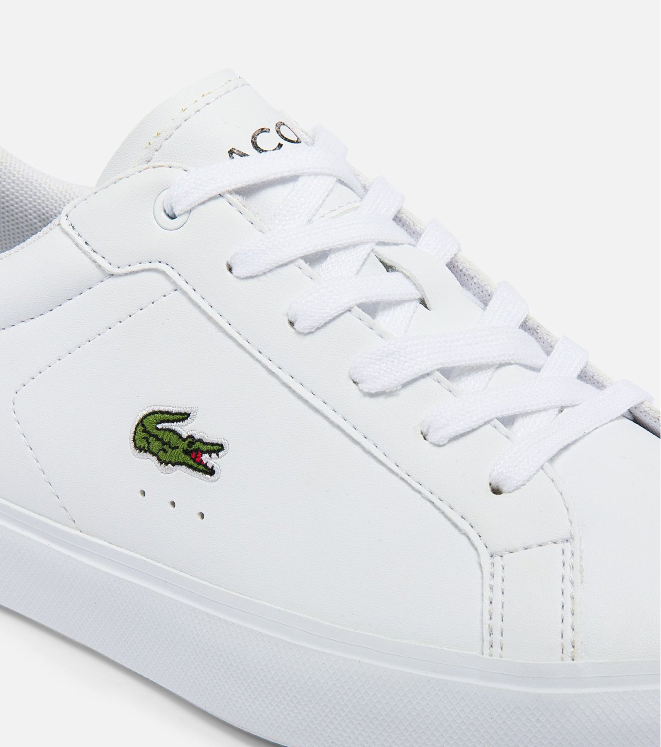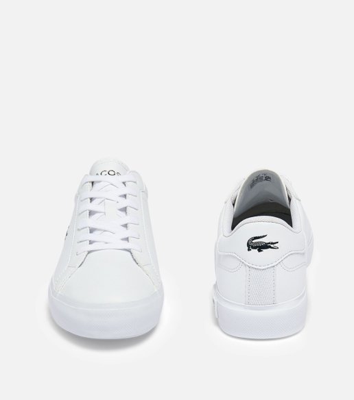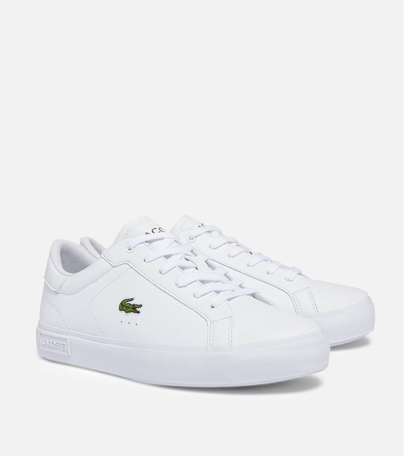 Zapatilla Lacoste junior en color blanco con corte en PU y forro textil. Cierre con cordones y detalle del icónico cocodrilo en el lateral. Su diseño y tallaje la hacen perfecta también para mujer, combinando estilo y comodidad para el día a día