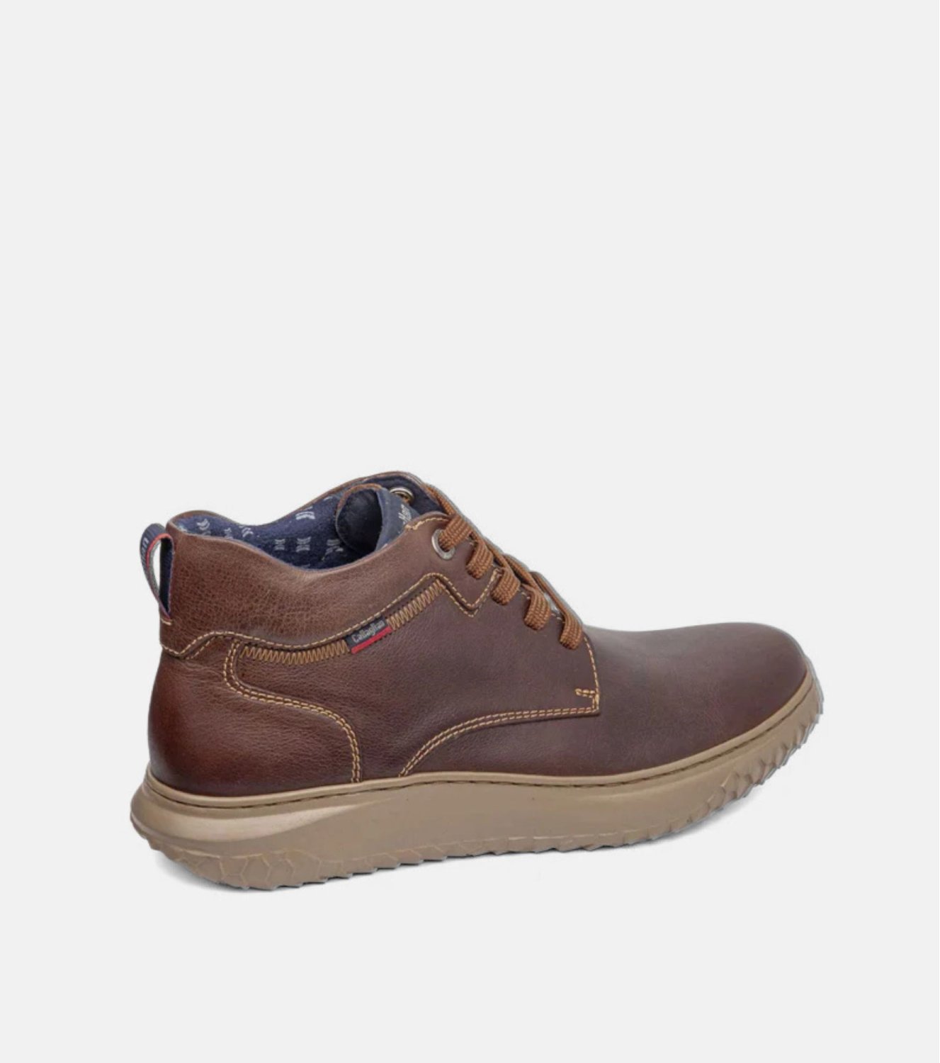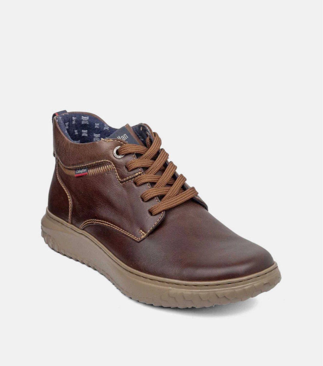Botín de Callaghan en color marrón. Fabricado en piel de máxima calidad y resistencia, curtida de forma artesanal. Cierre de cordones. Forro en tejido transpirable y antibacteriano. Extralight, material de gran ligereza y flexibilidad