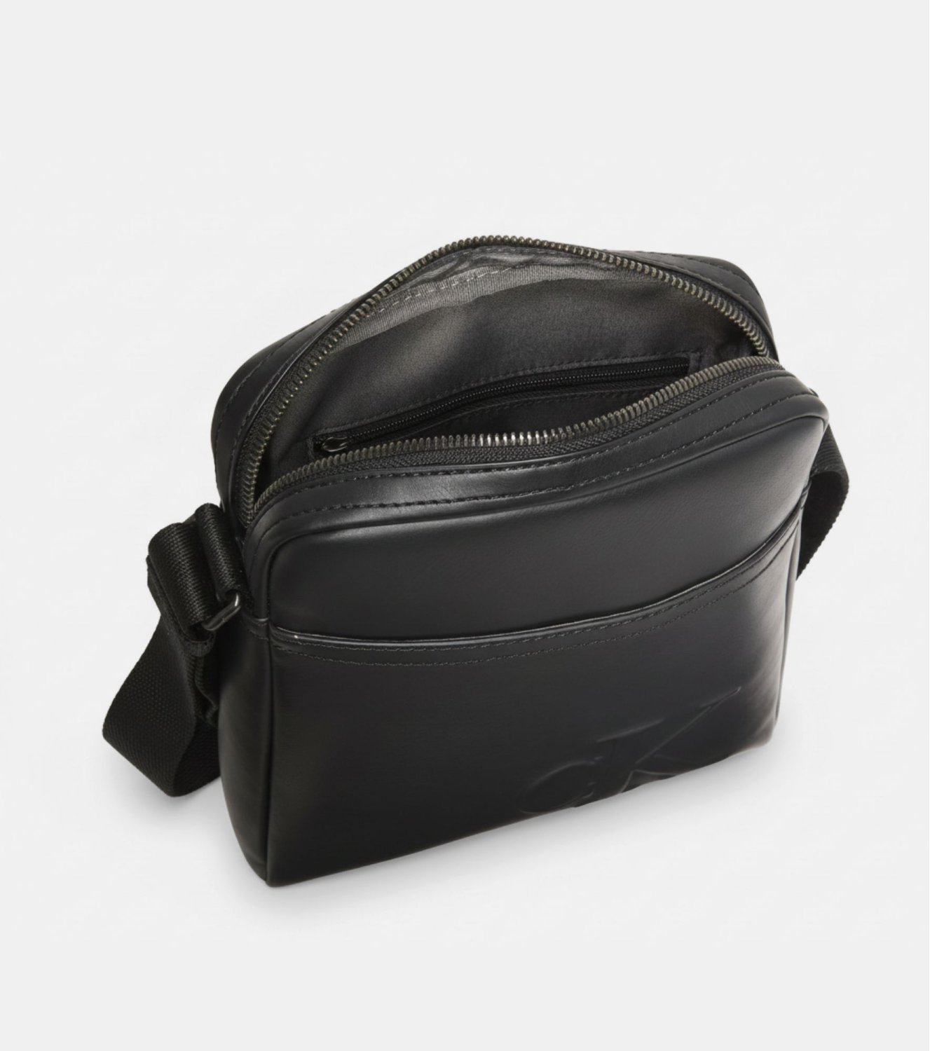 Bolso de Calvin Klein en color negro fabricado en material sintético, con cierre de cremallera, correa ajustable y compartimentos interiores. Medidas: 17 x 20 x 7 cm