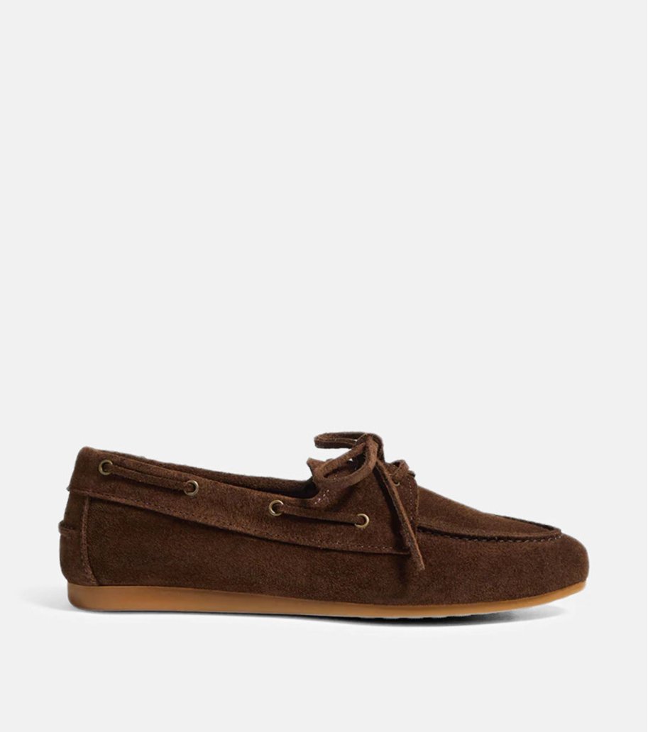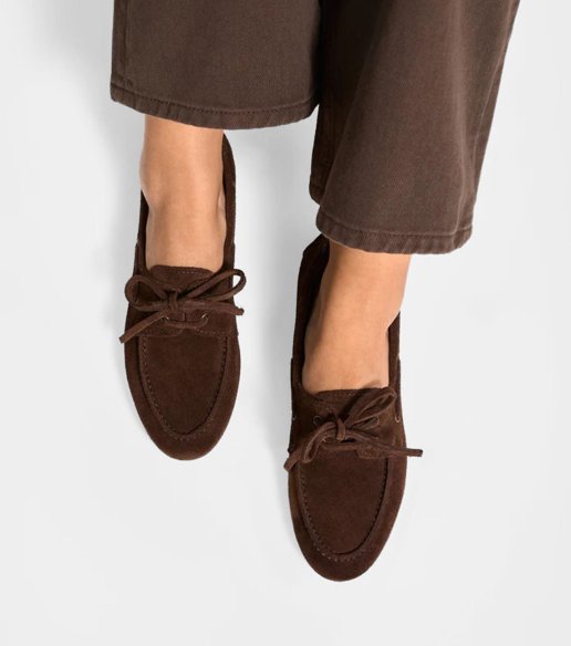 Náutico Abby de Bryan Stepwise en color cacao. Fabricado en piel serraje, con cordones y suela flexible con cuña integrada en el talón para mayor comodidad. Un modelo cómodo y versátil, diseñado y fabricado en España