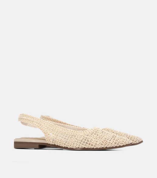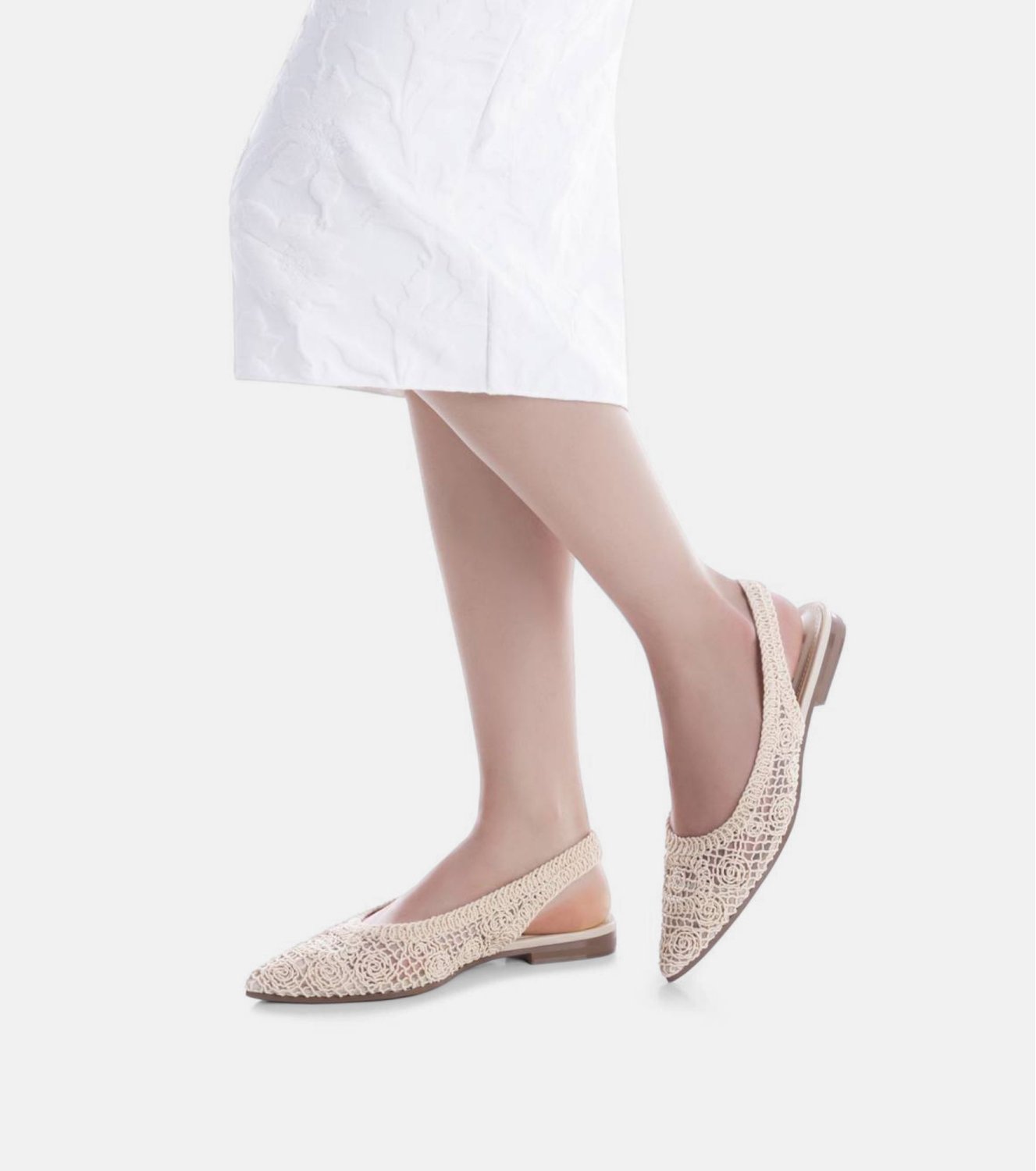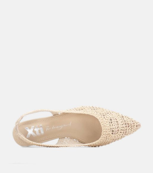 Bailarina de Xti en color beige con acabado textil trenzado y puntera cerrada acabada en pico. Tira al talón con elástico. Modelo plano de perfil sencillo, pensado para un uso diario cómodo y fácil de combinar con looks neutros de primavera y verano