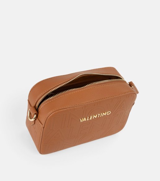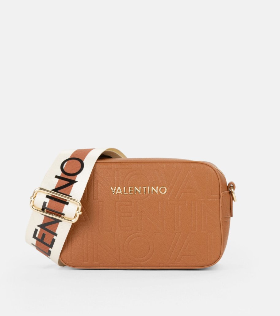 Bolso bandolera Valentino Pansy en color cuero. Elaborado en material sintético con acabado granulado y logo grabado. Incorpora cierre de cremallera y correa ajustable. Medidas: 13 × 20 × 5 cm.