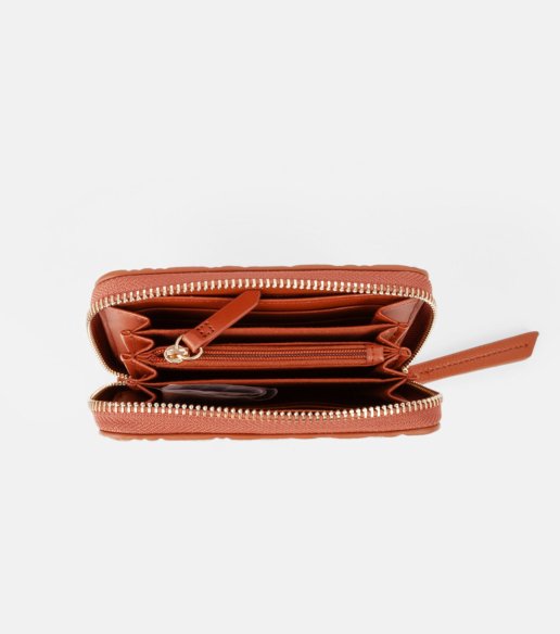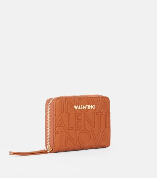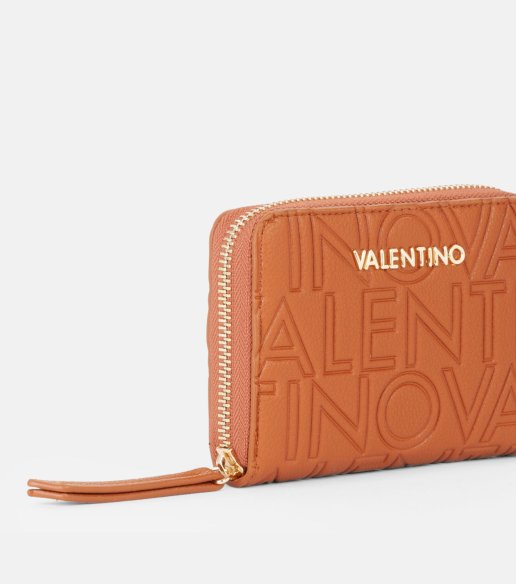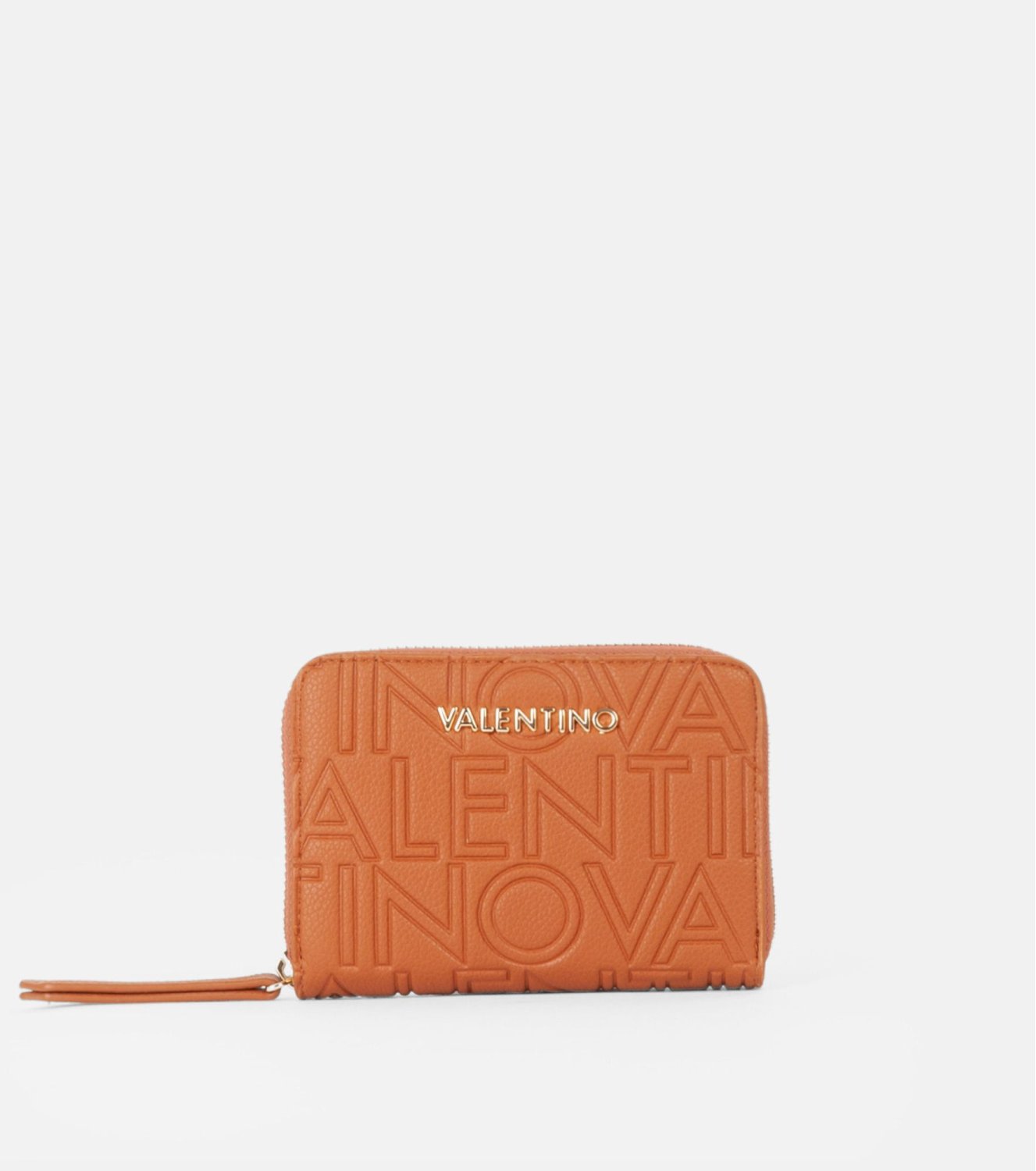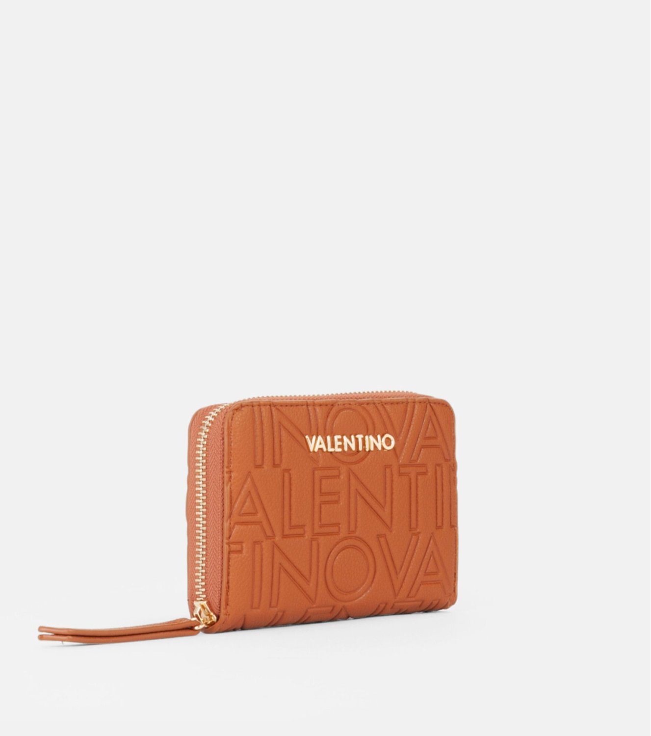 Cartera Valentino en color cuero con distintivo patrón de logotipo grabado en relieve en toda la superficie. Diseño compacto con cierre de cremallera e interior organizado con compartimentos para tarjetas y billetes. Medidas: 9,5 x 13 x 2 cm.