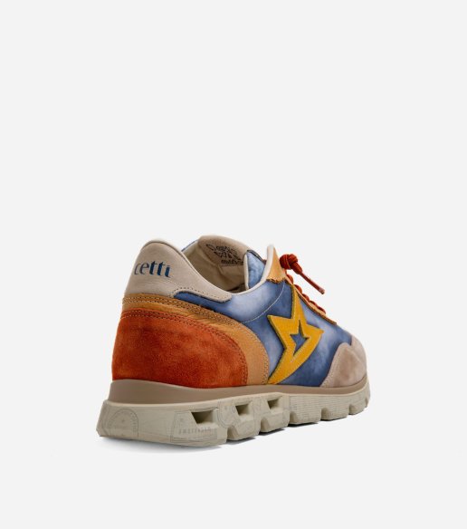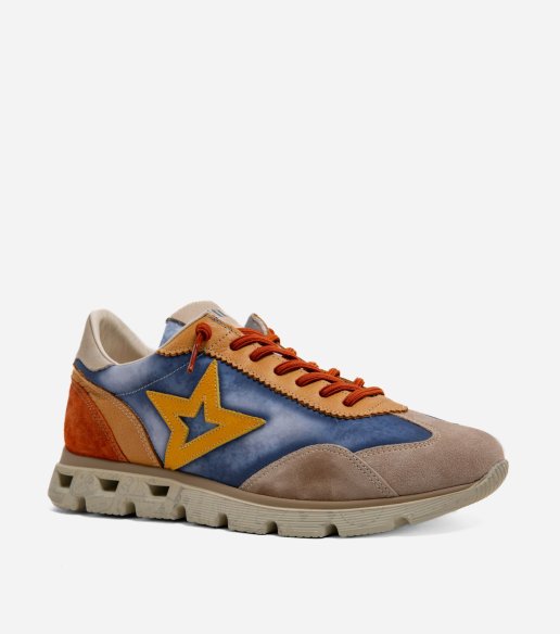 Deportivo Cetti en tonos jeans, cuero y arena. Fabricado en combinación de piel. Diseño con cordones elástico, estrella lateral en contraste y suela dentada que aporta estabilidad y comodidad para un uso diario.