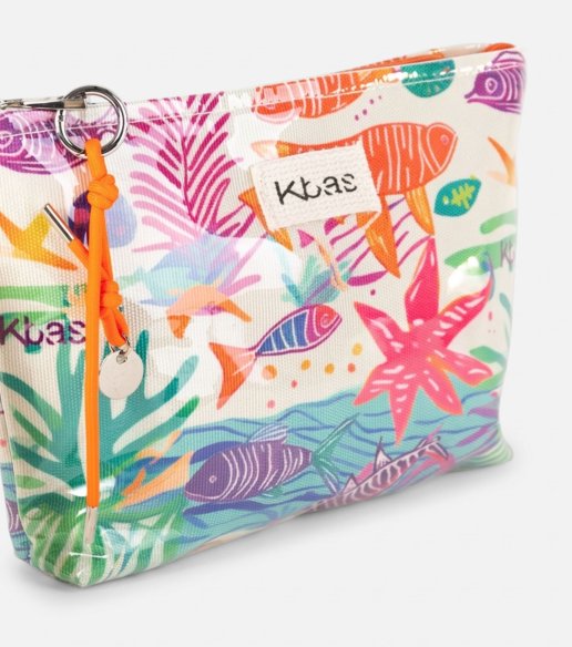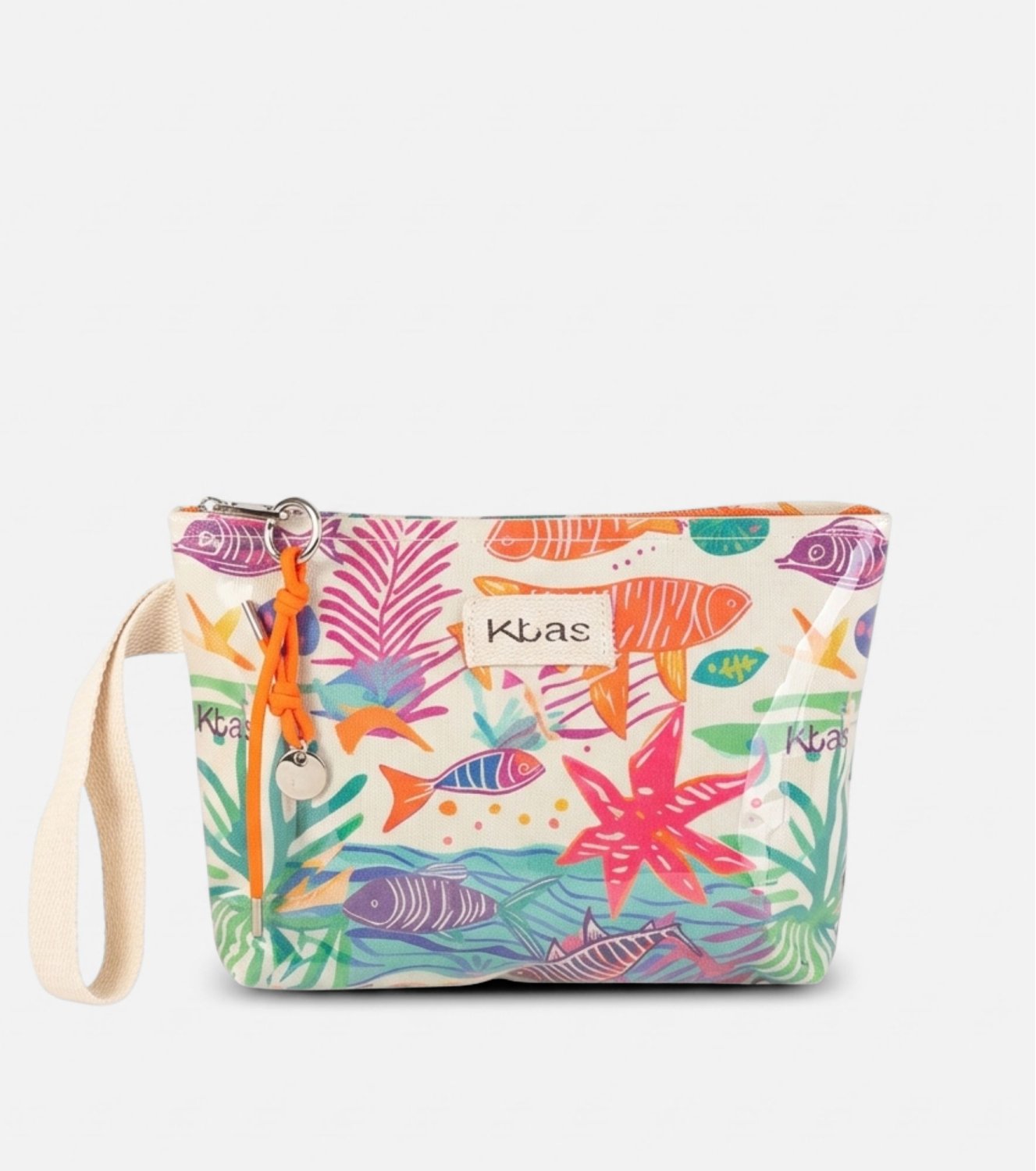 Neceser Kbas multicolor. Confeccionado en lona plastificada con estampado de inspiración marina. Diseño compacto con cierre de cremallera y asa lateral para mayor comodidad. Interior práctico para organizar tus básicos. Medidas: 28 x 20 x 7 cm.