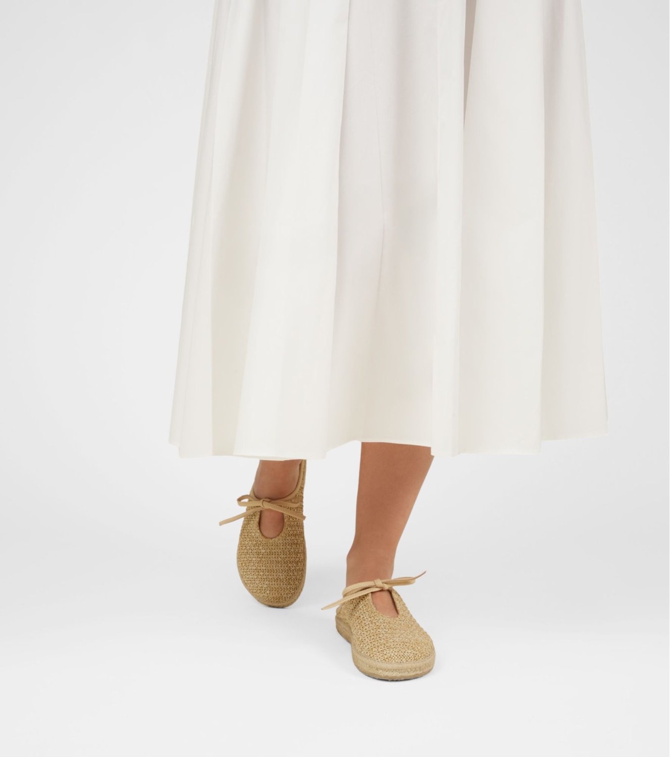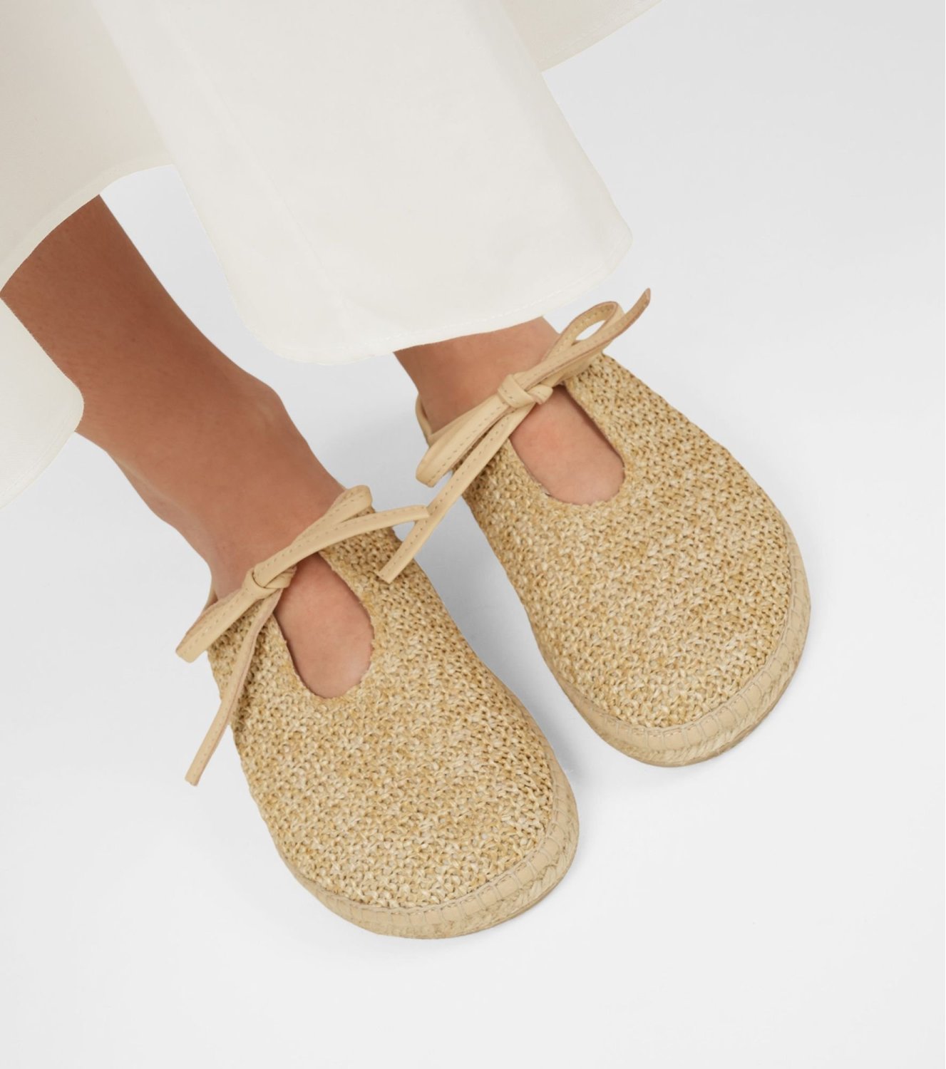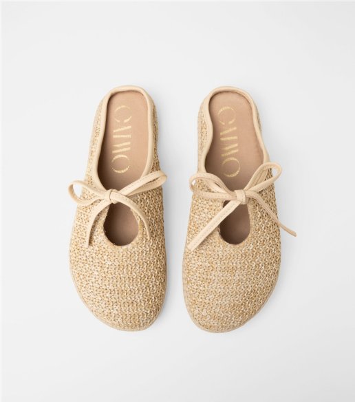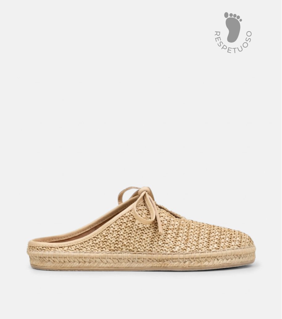 Zueco barefoot Gaimo en color natural. Confeccionado rafia delicada. Con diseño cerrado y abertura en el empeine con detalle de lazada. Con plantilla y forro de piel. Horma ancha y suela plana flexible que favorece el movimiento natural del pie.